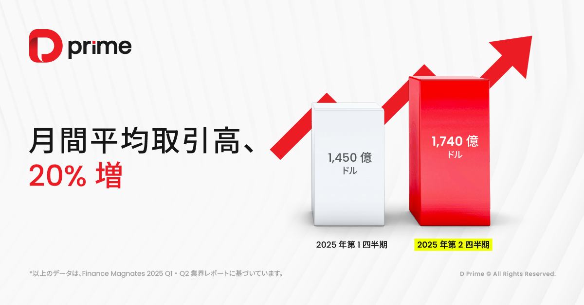 ブランド刷新に伴うサービスの向上とユーザー拡大が、取引量の急成長を牽引しました。レポートによれば、第2四半期の月間平均取引高は1,740億米ドルに達し、第1四半期(1,450億米ドル)から20%増加し過去最高を記録。この成果は市場の活発化を反映すると同時に、D Primeの技術力と総合的なサービス品質に対するグローバル投資家からの高い信頼を裏付けています。